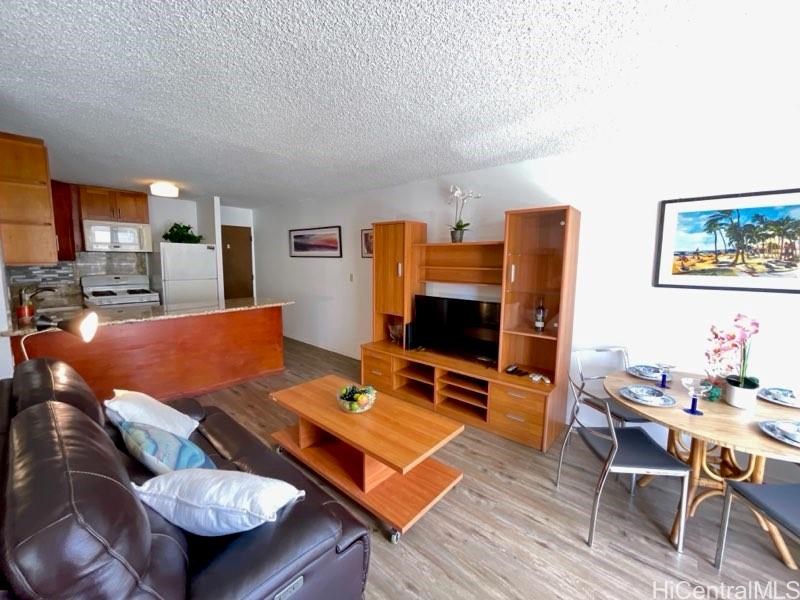 Property DescriptionWhether you're looking for a full-time home, a stylish island getaway, or a strong investment opportunity, this Waikiki Lanais condo checks all the boxes. This fee simple unit features an updated kitchen with granite countertops. Chefs will love that it has a gas stove for efficient and proper cooking, and the newly renovated bathroom provides added clean style. Morning coffee or unwinding after a day at the beach on the large lanai—Located just a few blocks from world-famous Waikiki Beach, you're minutes from top restaurants, shopping, nightlife, and endless outdoor activities. The building offers excellent amenities including a rooftop deck with panoramic views, BBQ,a wet bar area, and plenty of seating to relax or entertain. Additional features include a pool, hot tub, fitness room, Sauna, large laundry room, guest parking, and a pet-friendly policy. The unit is fully furnished and comes with a reserved garage parking stall. Plus, all utilities — including electricity, water, and cable — are included in the monthly maintenance fee. Move right in or start generating rental income from day one. |